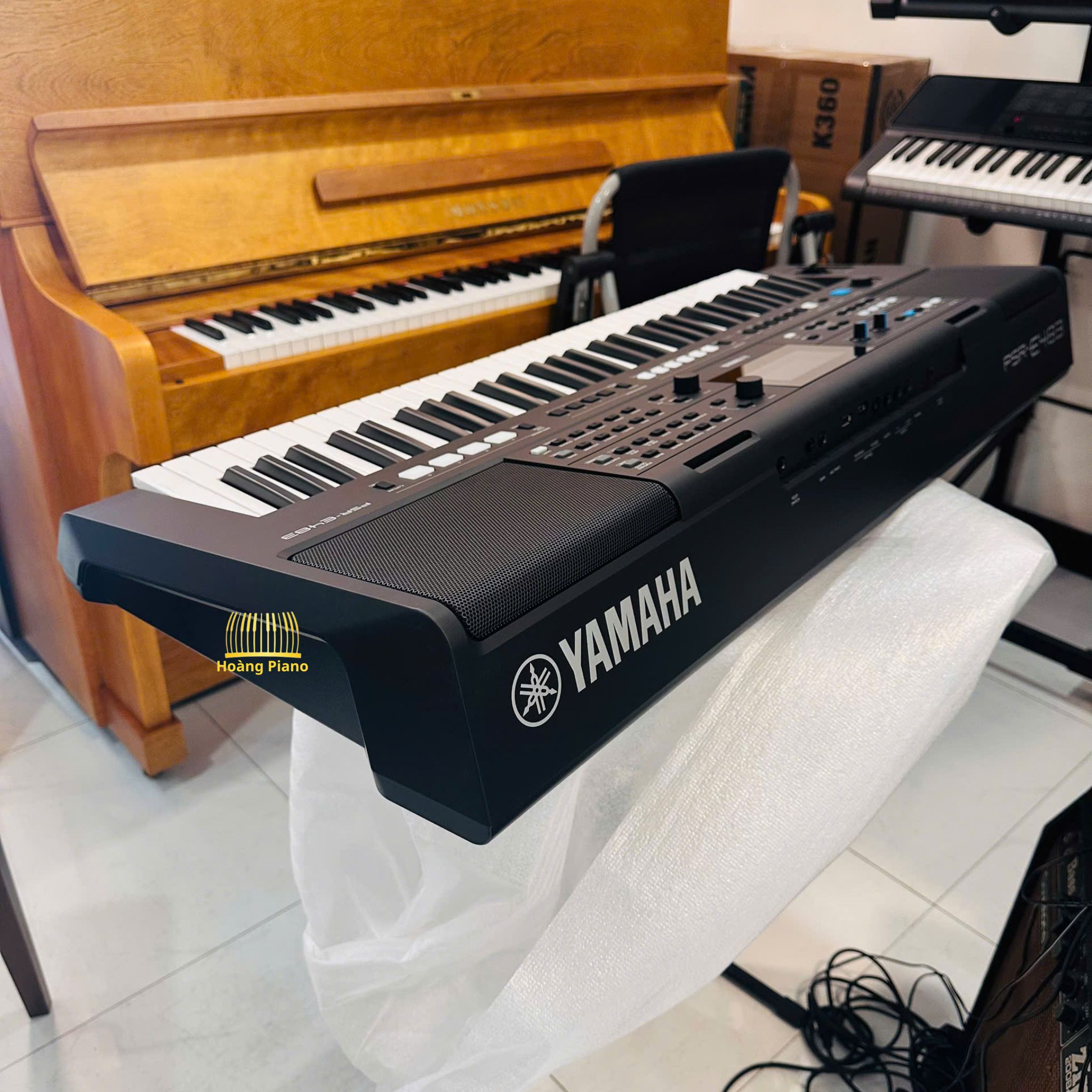 Yamaha PSR-E483 có thiết kế trẻ trung, hiện đại với tông màu đen mạnh mẽ, phù hợp với nhiều không gian khác nhau như phòng học, phòng khách hay sân khấu nhỏ. Thân đàn gọn gàng, trọng lượng nhẹ giúp việc di chuyển và lắp đặt trở nên thuận tiện. Bảng điều khiển được bố trí khoa học, các nút chức năng rõ ràng, dễ sử dụng ngay cả với người mới bắt đầu.